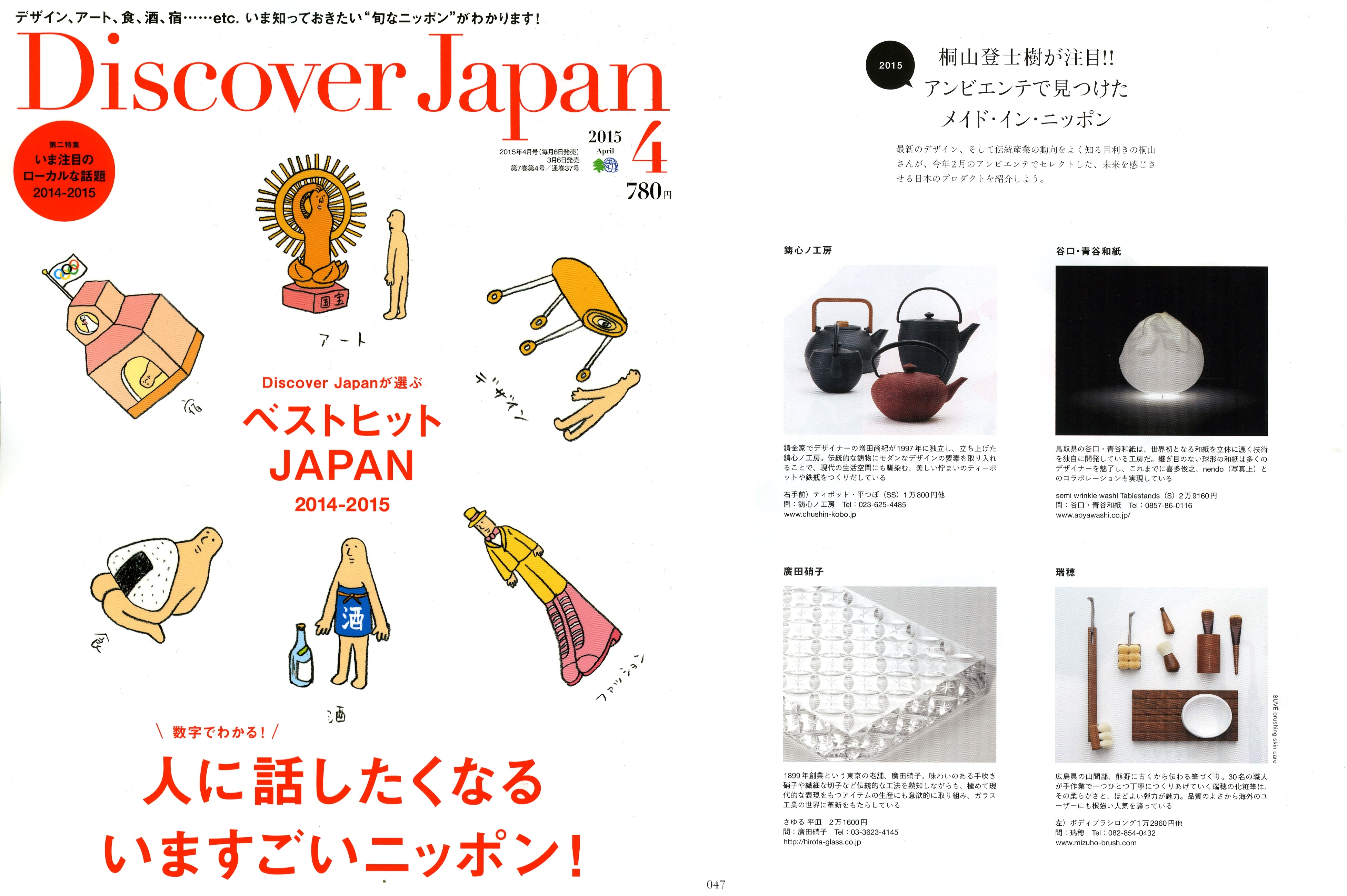 ディスカバー・ジャパン4月号でデザインディレクターの桐山登士樹さんがアンビエンテで見つけたメイド・イン・ジャパンで鋳心ノ工房を紹介してくださいました。
