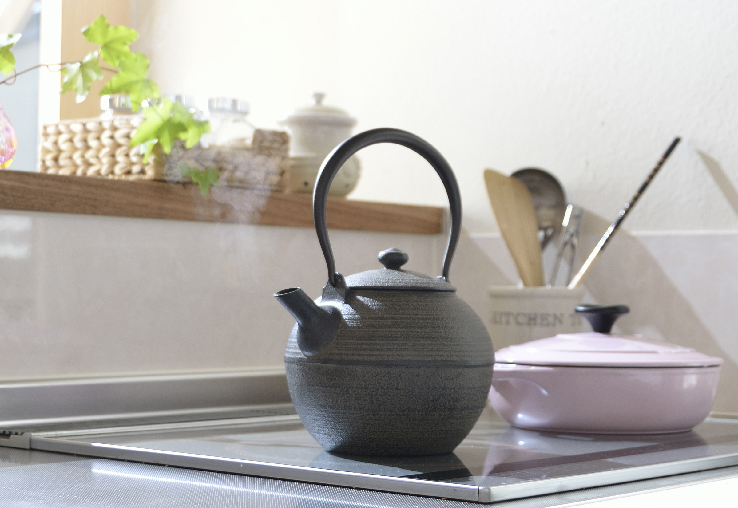品番:HS-66S品名:鉄瓶・挽目・小/鉄蓋HS-66S/Iron kettle/Hikime/S色:濃茶(本漆焼付仕上げ) 寸法:135x160x210mm容量:1.0L材質:鋳鉄重量:約1,200g価格:30,000円(税抜き)