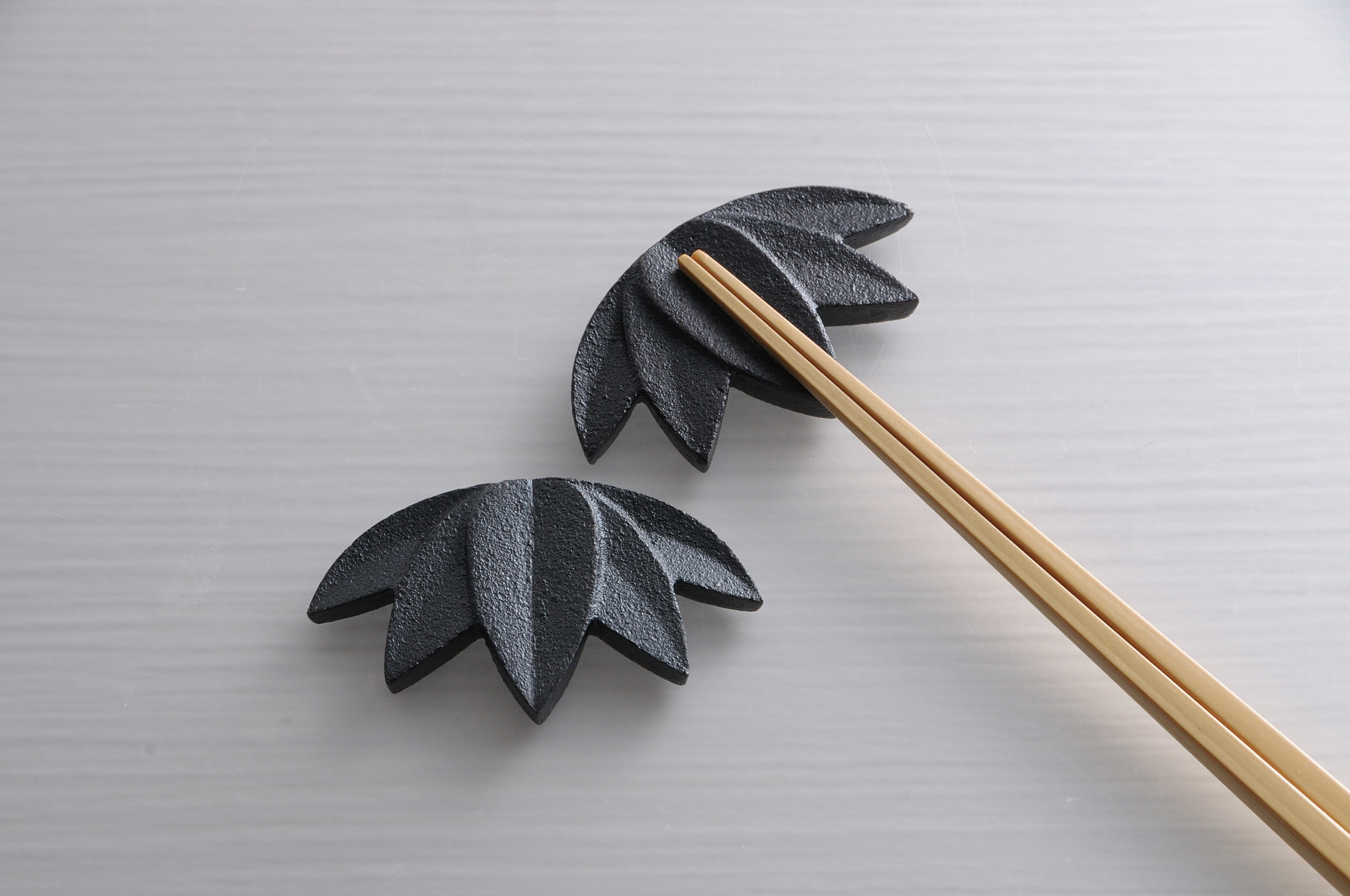 品番:JP-06品名:はしおき・笹JP-06/Rest/Bamboo leaf色:黒寸法:34x57x8mm(1個のサイズ)材質:鋳鉄重量:40g(1個の重さ)価格:2個セット2,200円(税抜き)価格:3個セット3,300円(税抜き)価格:4個セット4,400円(税抜き)