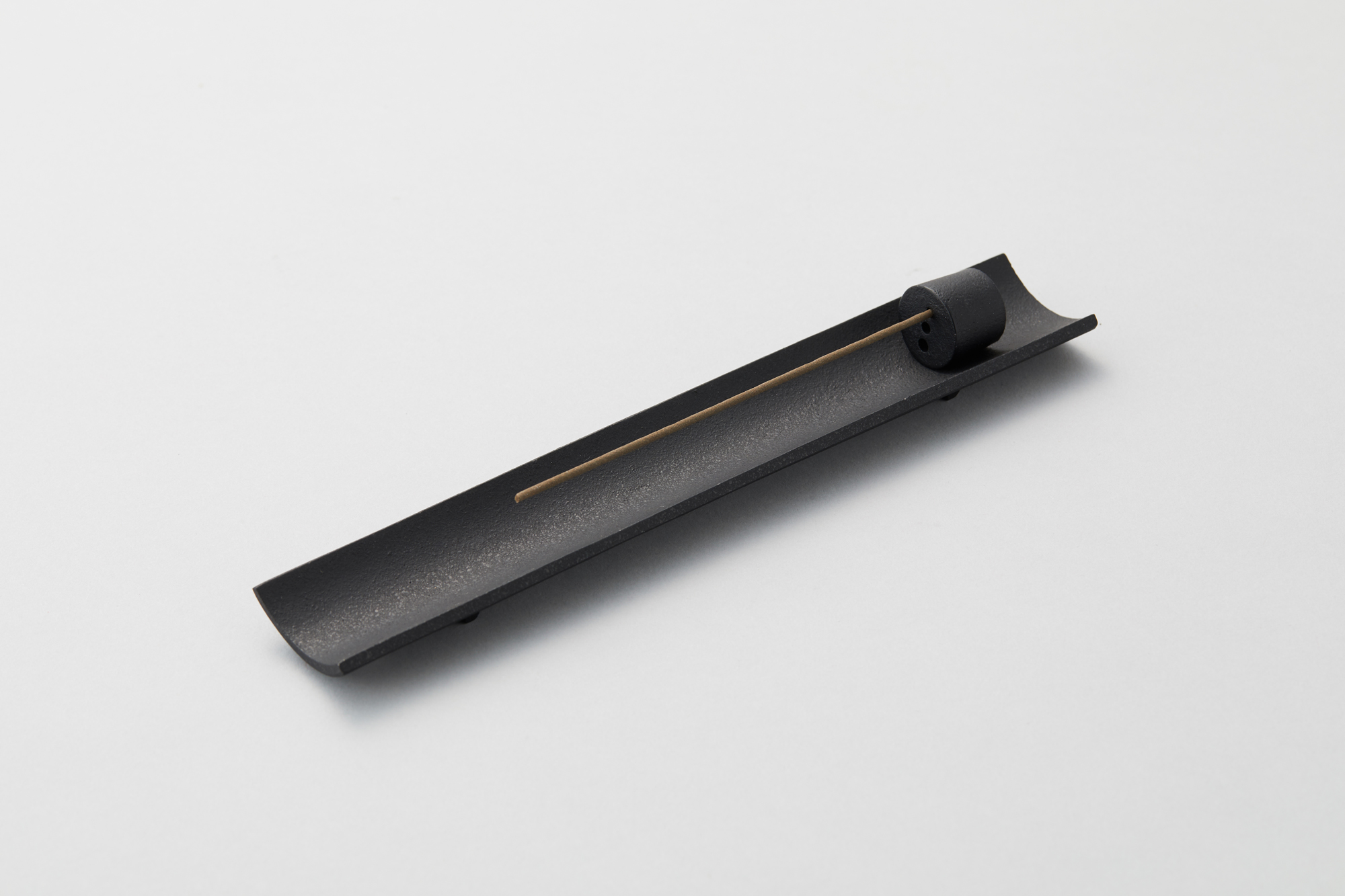 品番:HS-47品名:香立・まどかCH-47/Incense stand/Madoka色:本体:黒、こま:黒・金・銀(アクリル焼付仕上げ)寸法:240x40x13mm材質:鋳鉄重量:約300g価格:4,800円(税抜き)※お香をセットする穴が3種類あります。お香の太さに合わせてお使いください。
