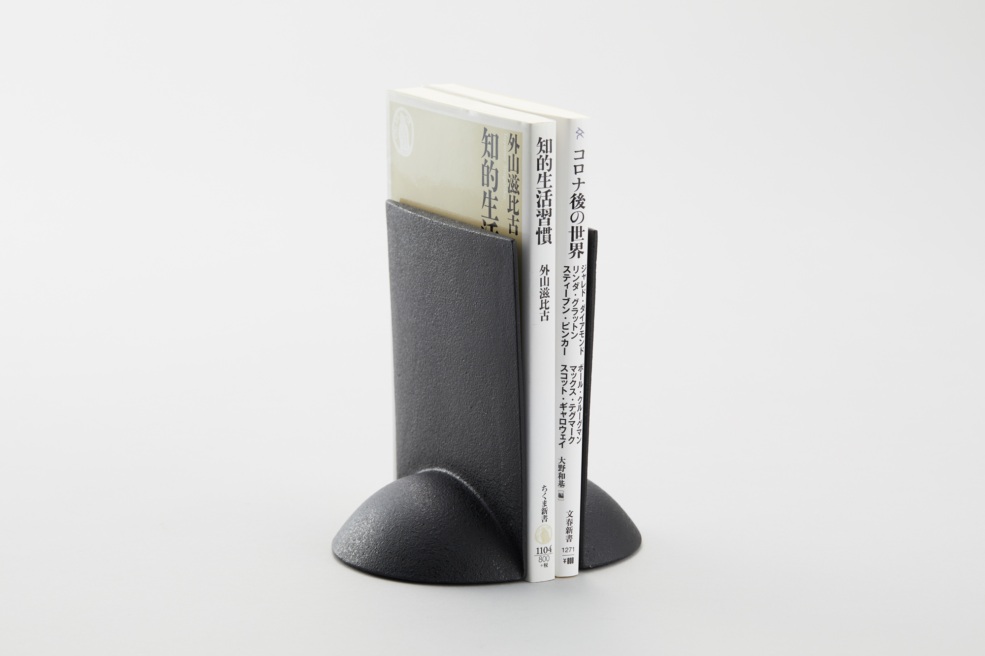 品番:MA-76品名:ブックエンド・曲がり(2個セット)MA-76/Bookends/Mage色:黒(アクリル焼付仕上げ)寸法:130x100x50mm材質:鋳鉄重量:約1,600g仕様:底はフエルト貼り価格:10,000円(税抜き)