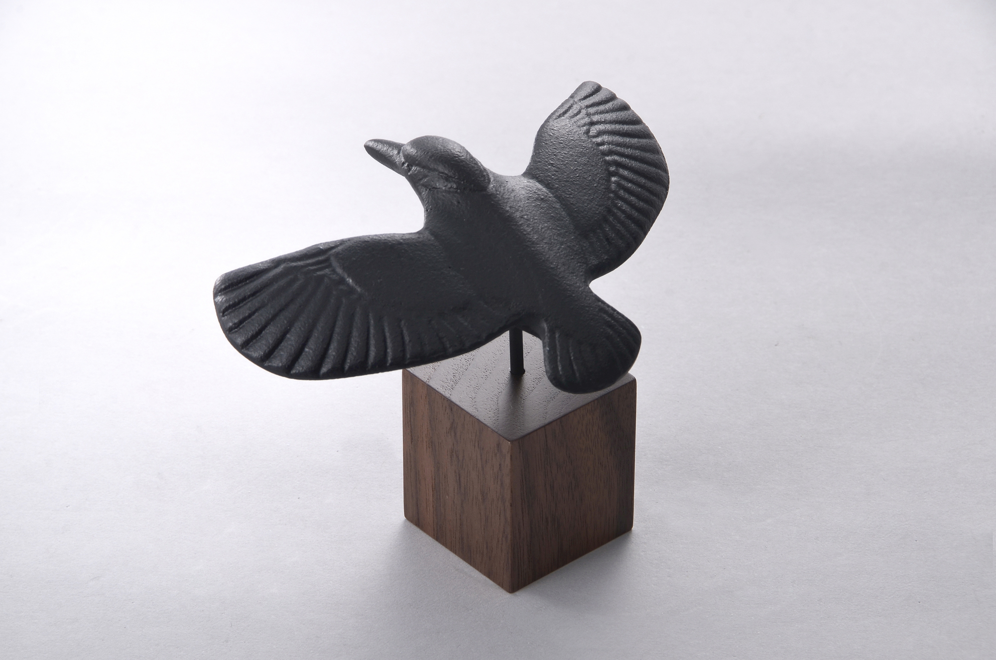 品番:TR-04品名:オーナメント・カワセミ・L色:黒・青・緑・黄・茶寸法:W110xD80xH90mm材質:鋳鉄・木(ウォールナット)重量:約250g価格:5,000円(税抜)