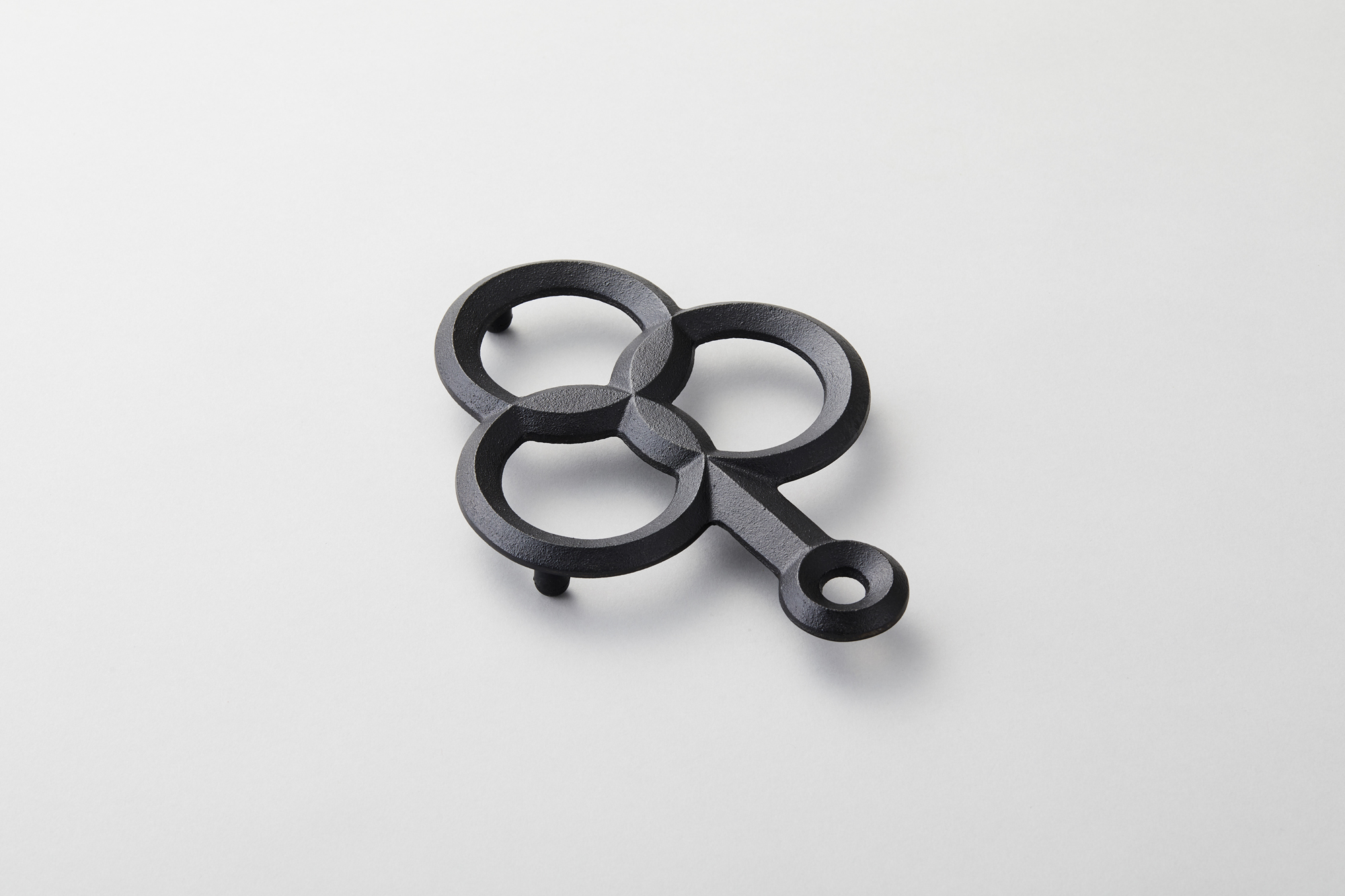 品番:KO-01品名:鍋敷・三葉色:黒(本漆焼付仕上げ)寸法:W195xD140xH22mm材質:鋳鉄重量:約400g価格:4,000円(税抜き)KO-01/Pot stand/Mitsuba