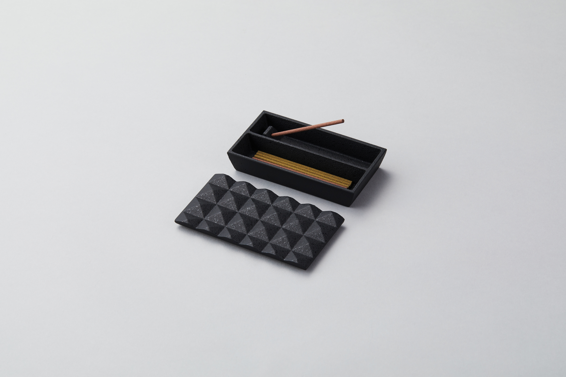 This is a series of incense boxes that combine the functions of incense holders and incense storage. This incense box is designed with consideration for incense ash. The incense is placed at an angle in the holder. The ash falls into the incense box, so it is safe to use and does not stain the surrounding area.