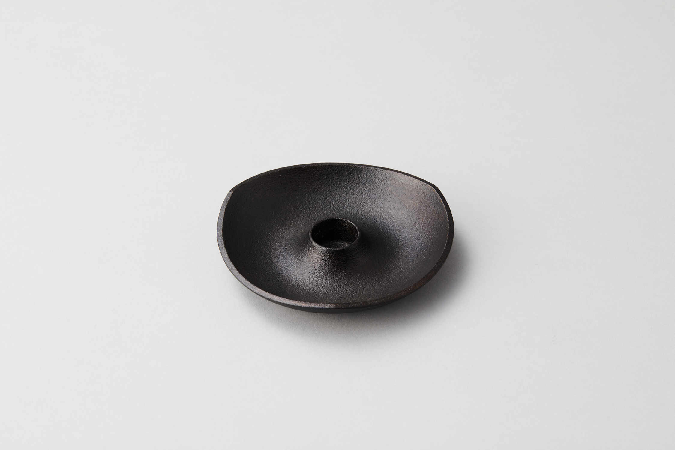 キャンドルスタンド・三方品番:HS-45品名:キャンドルスタンド・三方色:黒(本漆焼付仕上げ)寸法:110x100x20mm材質:鋳鉄重量:300g価格:3,500円(税抜き)HS-45/Candle holder/Sampou