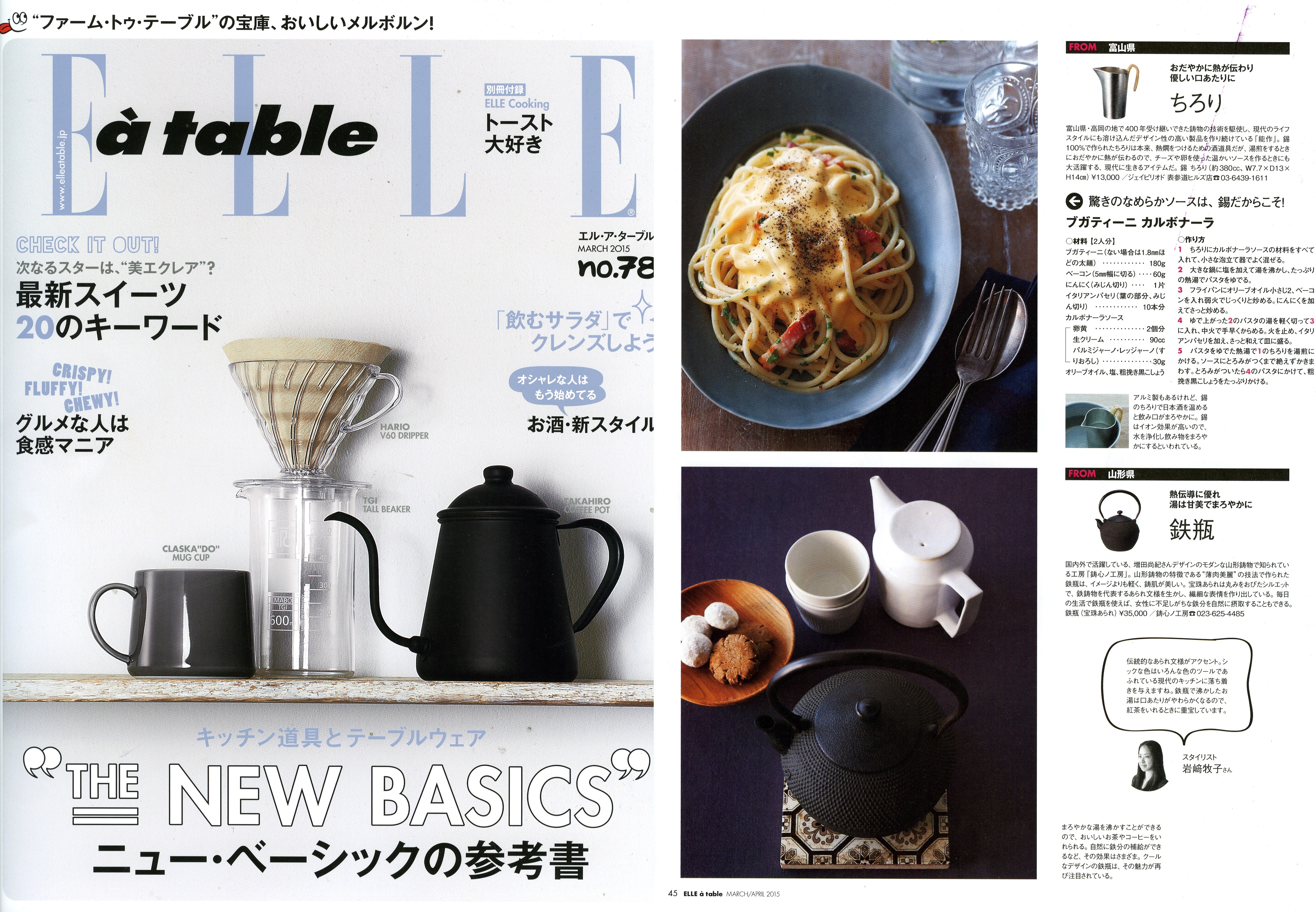 エル・ア・テーブルMarch 2015にスタイリストの岩埼牧子さんが、鋳心ノ工房の鉄瓶の良さと山形鋳物の特長を丁寧に紹介してくださいました。