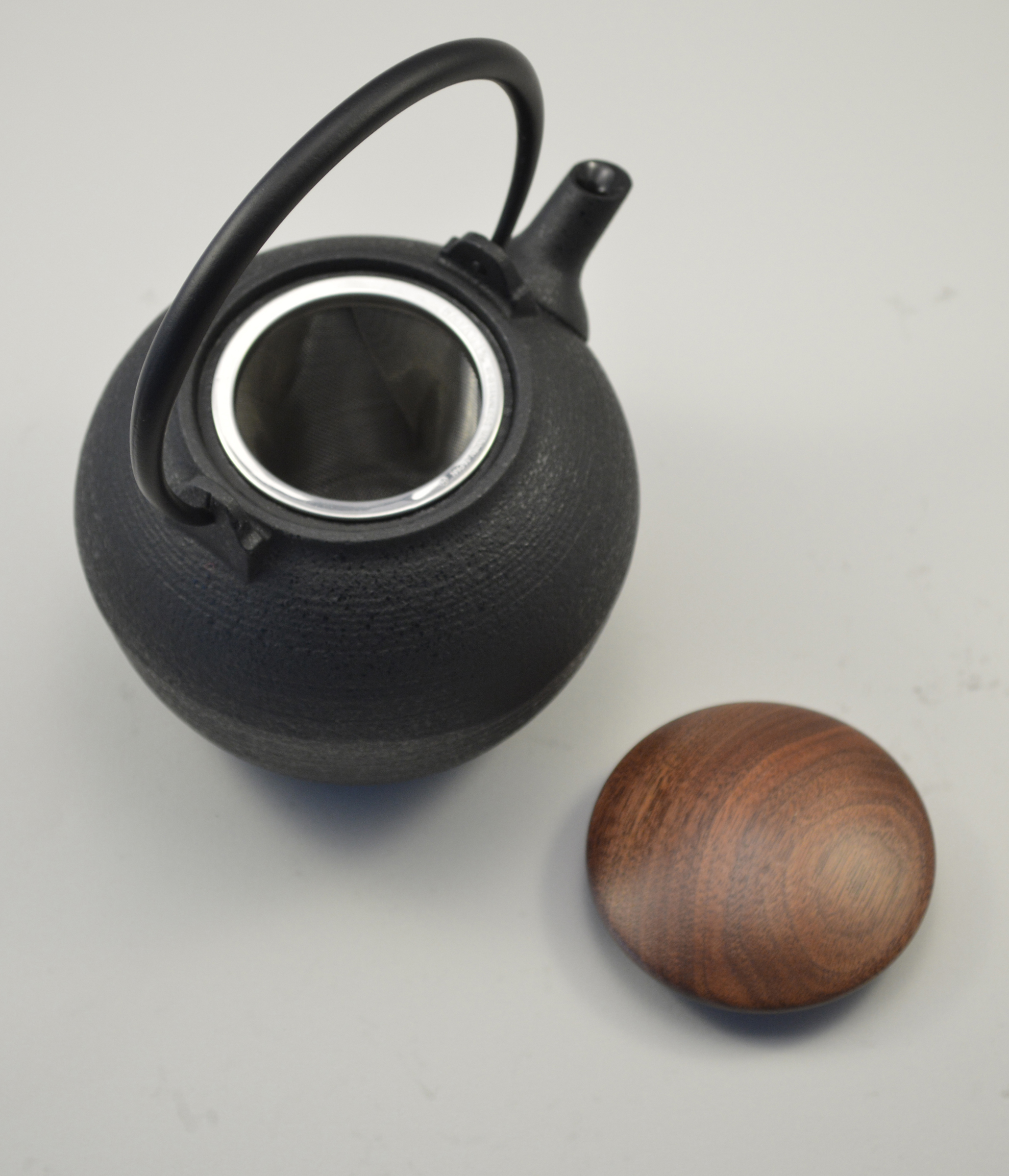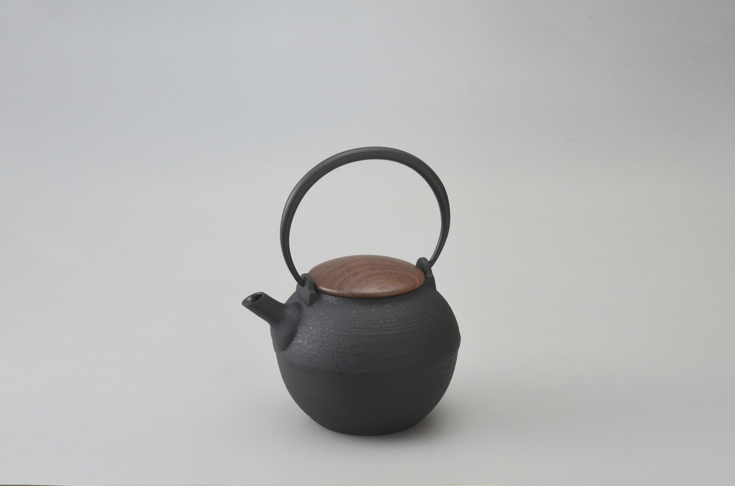品番:582-SWD品名:ティポット・ヒキメ・S/木蓋色:黒(アクリル焼付け塗装)寸法:120x140x175mm容量:0.6L材質:本体・鋳鉄 つる・鉄 蓋・ウォールナット重量:800g価格:18,000円(税抜き)