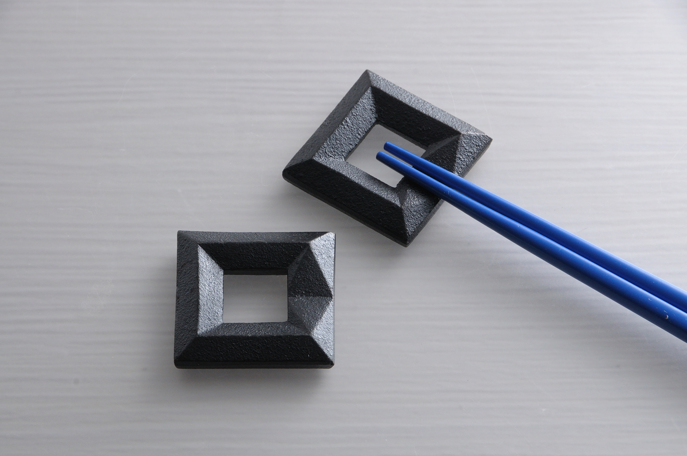 品番:CH-80品名:箸置き・角CH-80/Rest/ Square色:黒寸法:40x40x8mm(1個のサイズ)材質:鋳鉄重量:50g(1個の重さ)価格:2個セット2,200円(税抜き)価格:3個セット3,300円(税抜き)価格:4個セット4,400円(税抜き)