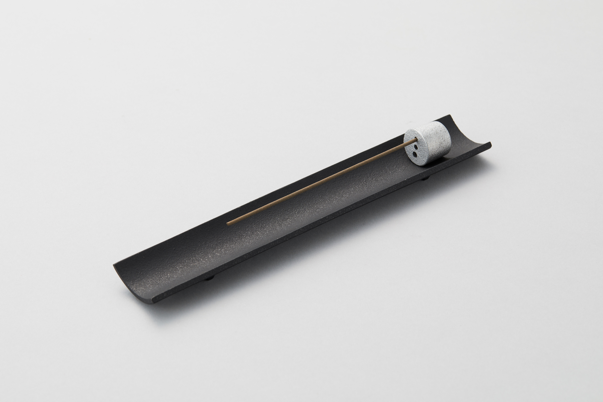 品番:HS-47品名:香立・まどかCH-47/Incense stand/Madoka色:本体:黒、こま:黒・金・銀(アクリル焼付仕上げ)寸法:240x40x13mm材質:鋳鉄重量:約300g価格:4,800円(税抜き)※お香をセットする穴が3種類あります。お香の太さに合わせてお使いください。