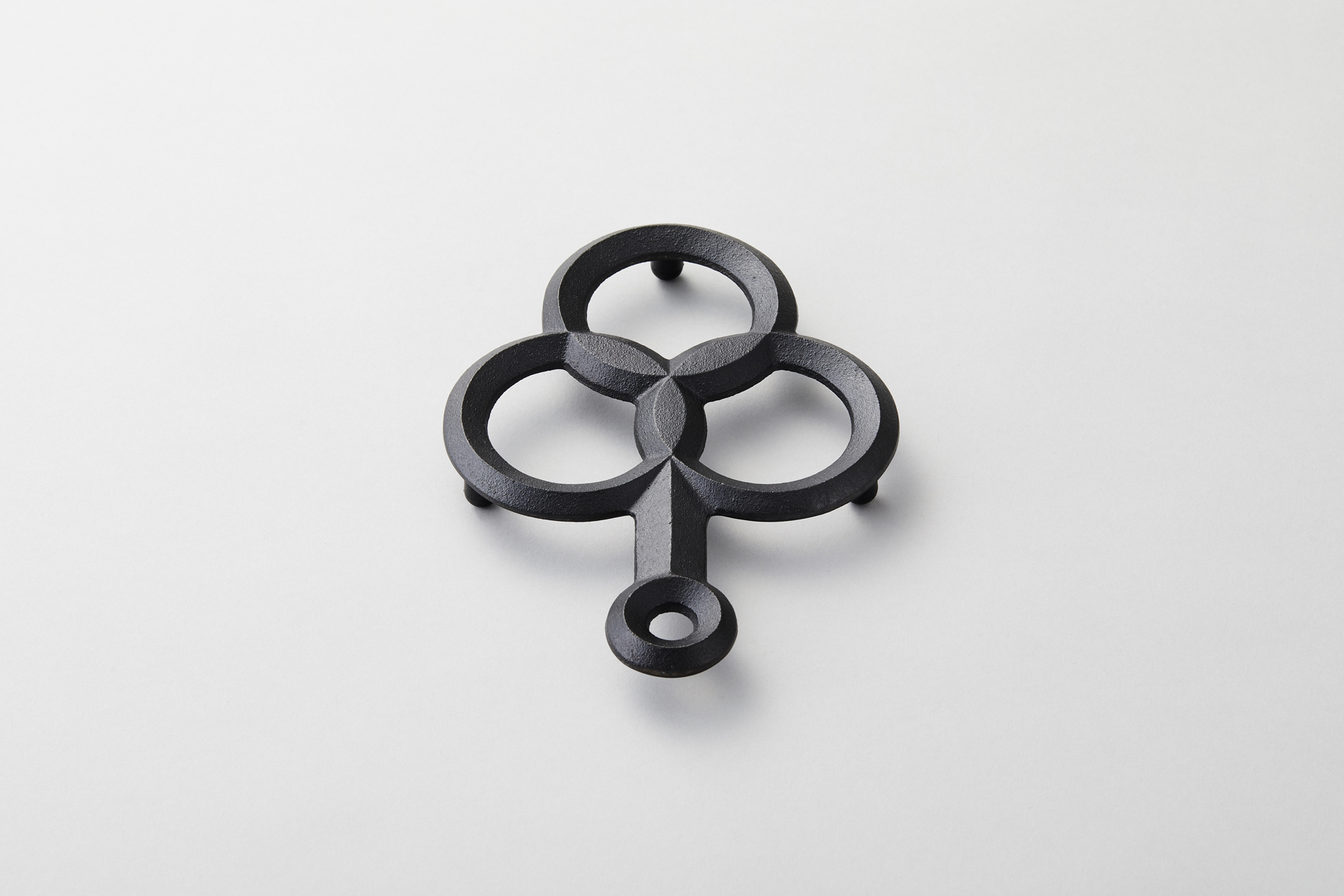 品番:KO-01品名:鍋敷・三葉色:黒(本漆焼付仕上げ)寸法:W195xD140xH22mm材質:鋳鉄重量:約400g価格:4,000円(税抜き)KO-01/Pot stand/Mitsuba