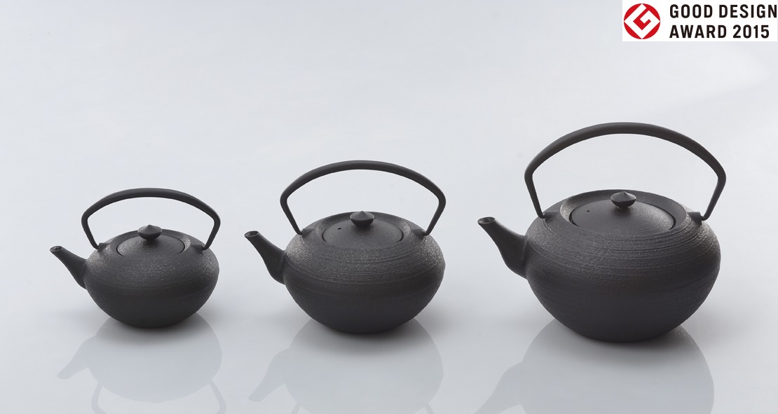 鉄鋳物のティポットは保温性が高く、冷めにくい特長を持っています。だからお茶を美味しくいれることができます。このような優れた特徴を持つ伝統素材を生かし、現代のライフスタイルに合わせた使いやすいティポットをデザインしました。サイズは0.4L,0.7L,1.4Lの3種類。使う場面、人数に合わせて選ぶことができます。本体表面は日本の鉄鋳物の特長でもある茶の湯釜に伝わる砂肌の技法を用い、茶壷のかたちをイメージしてデザインしました。内側は錆びを防ぐためホーロー加工を施しています。特に注ぎ口は手仕事で薄く仕上げ、水切りの良さを追求し、注ぎやすく使いやすいティポットを目指しました。