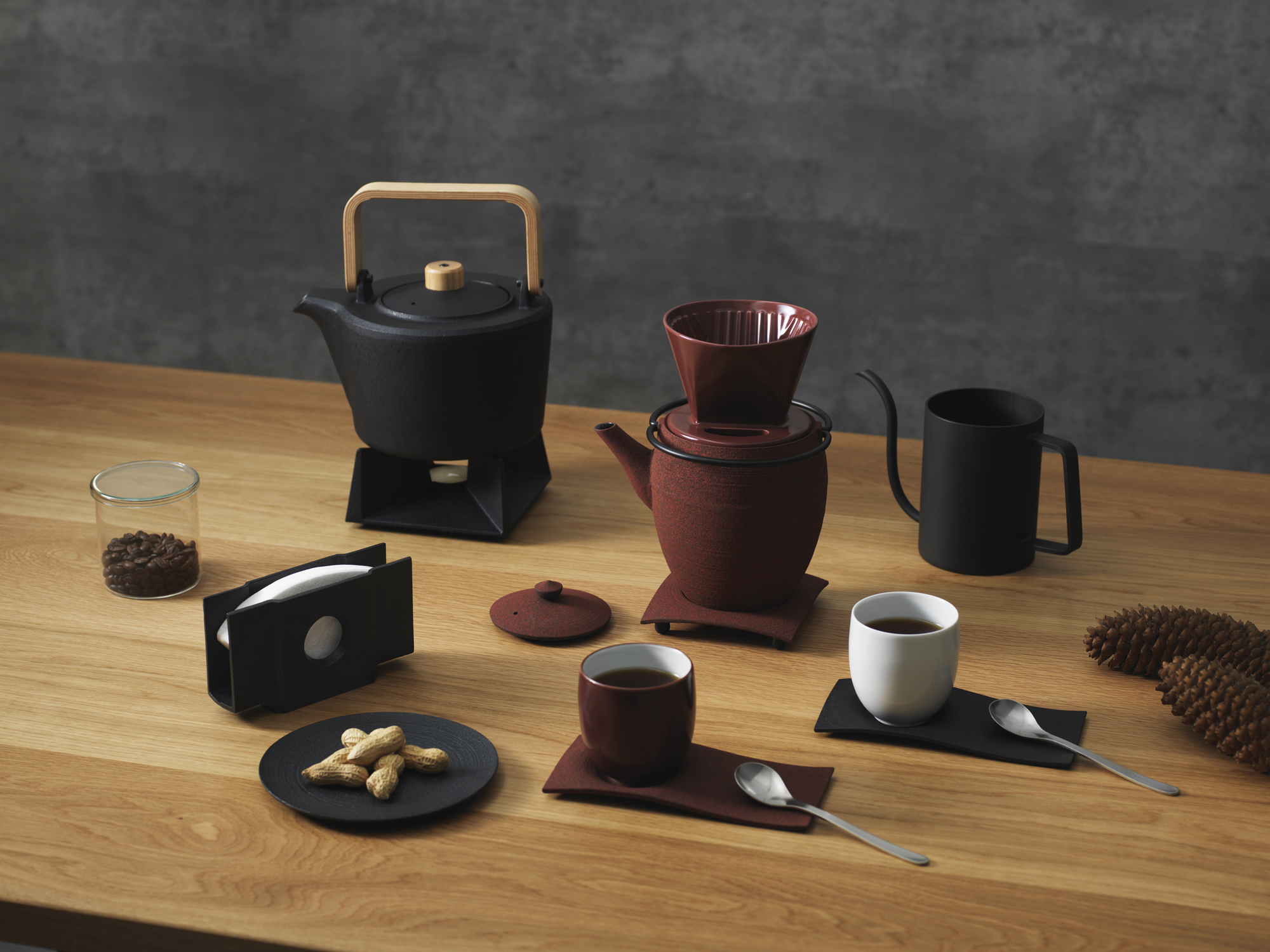 品番:HS-21L&CF-01品名:ティポット・丸筒・L &コーヒードリッパー色:黒セット寸法:155×170×210mm材料:鋳鉄・磁器セット重量:約1,900g価格:30,000円(税抜き)