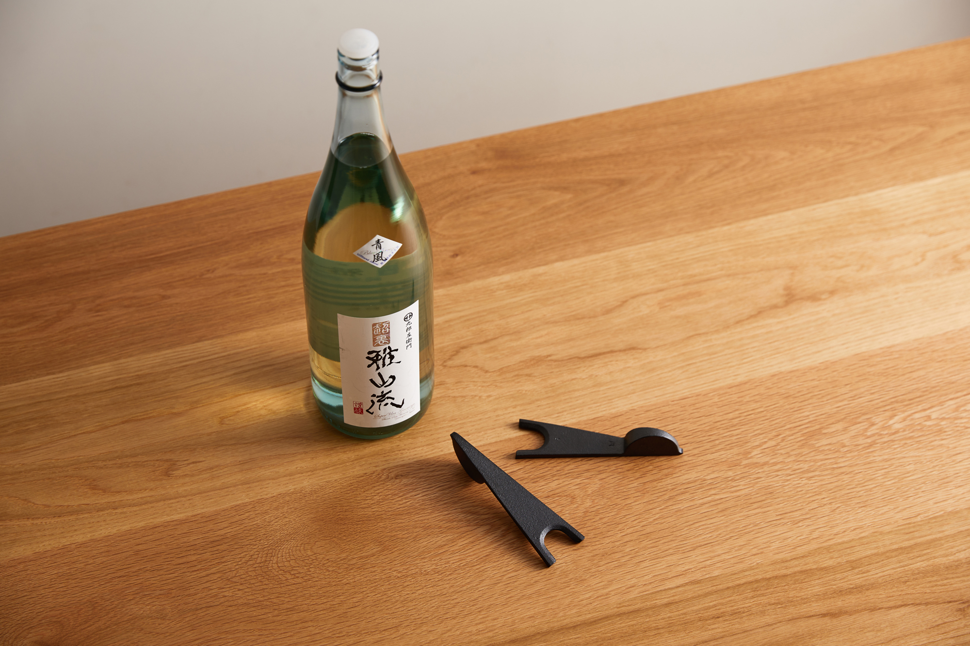 A cast iron sake bottle opener designed with a bird motif. It takes strength and technique to small uncork a bottle. This Opener helps you easily remove the cap by simply inserting it into the gap between the mouth of the bottle and the cap.
