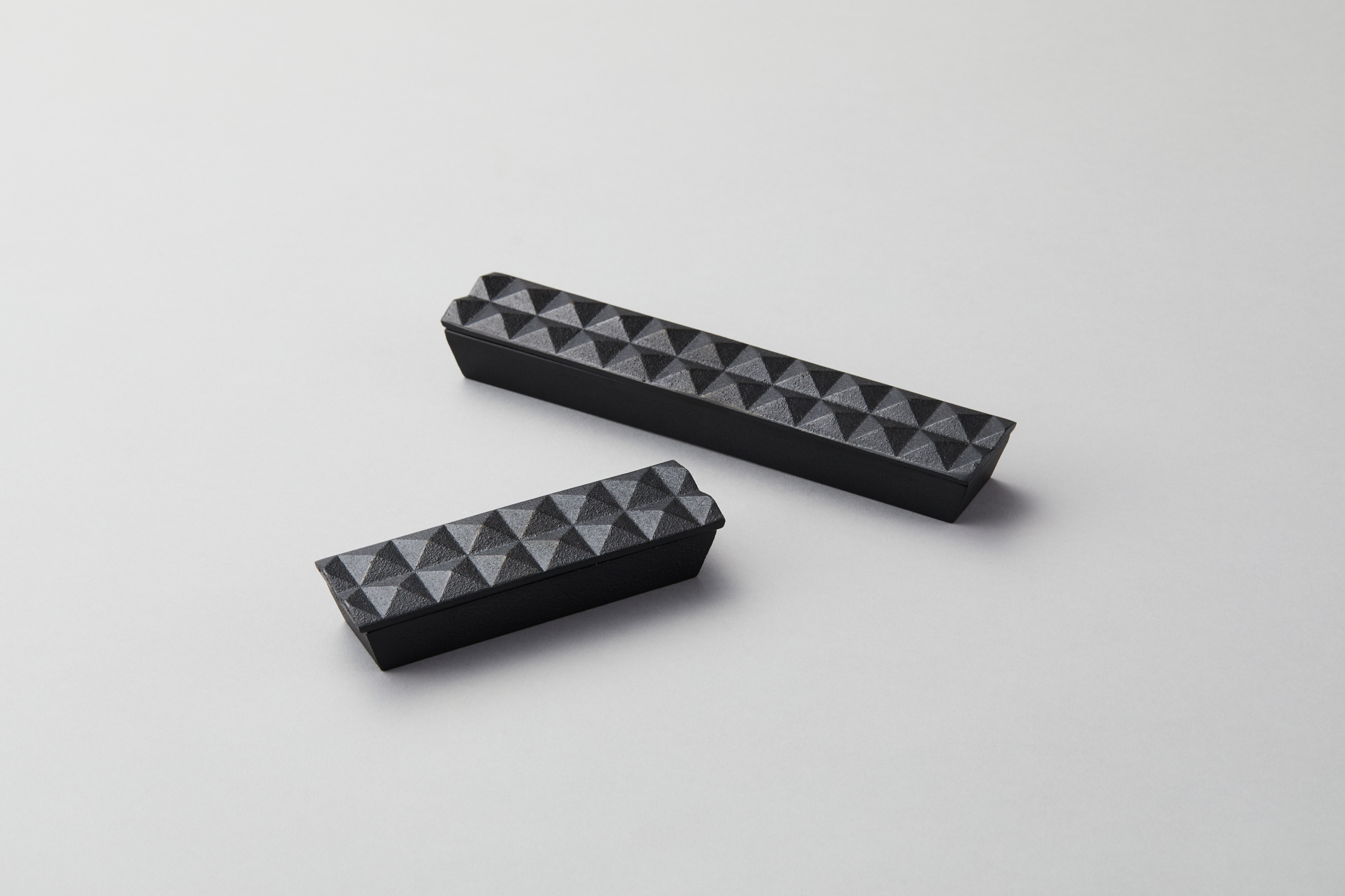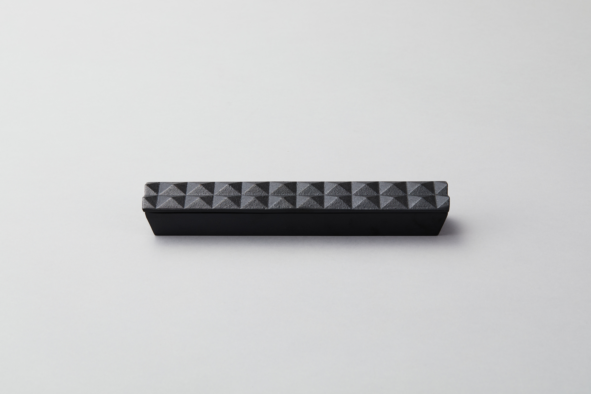 切子ガラスの繊細なカットをイメージしたデザインと鋳物砂で造型された砂肌の美しさが融合して生まれたかたちです。日本の伝統美を感じさせる一品です。サイズは2種類