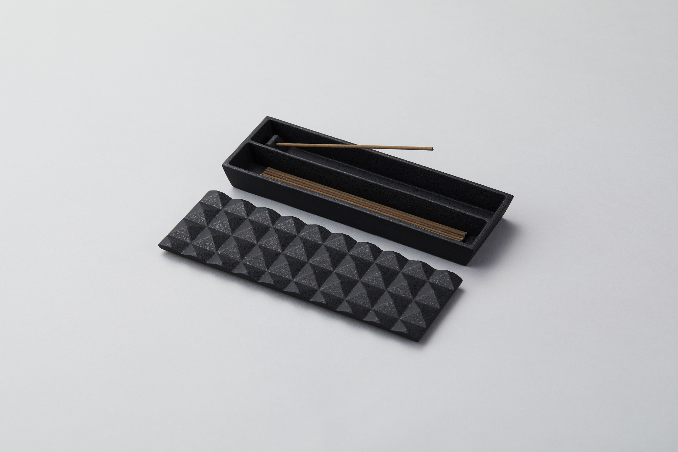 This is a series of incense boxes that combine the functions of incense holders and incense storage. This incense box is designed with consideration for incense ash. The incense is placed at an angle in the holder. The ash falls into the incense box, so it is safe to use and does not stain the surrounding area.