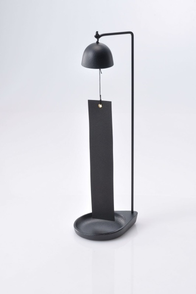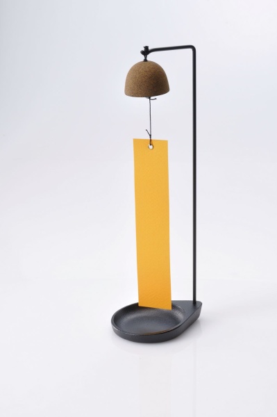 室内用の置型風鈴です。部屋の中のエアコン、扇風機の風で音色を楽しんで下さい。トレーに大切な小物を入れることもできます。また玄関先に置き、トレーに鍵を入れて、カギの出し入れで短冊に手が触れ、風鈴が鳴る。そんな楽しみ方もあります。全5色(青、緑、茶、黄、黒)